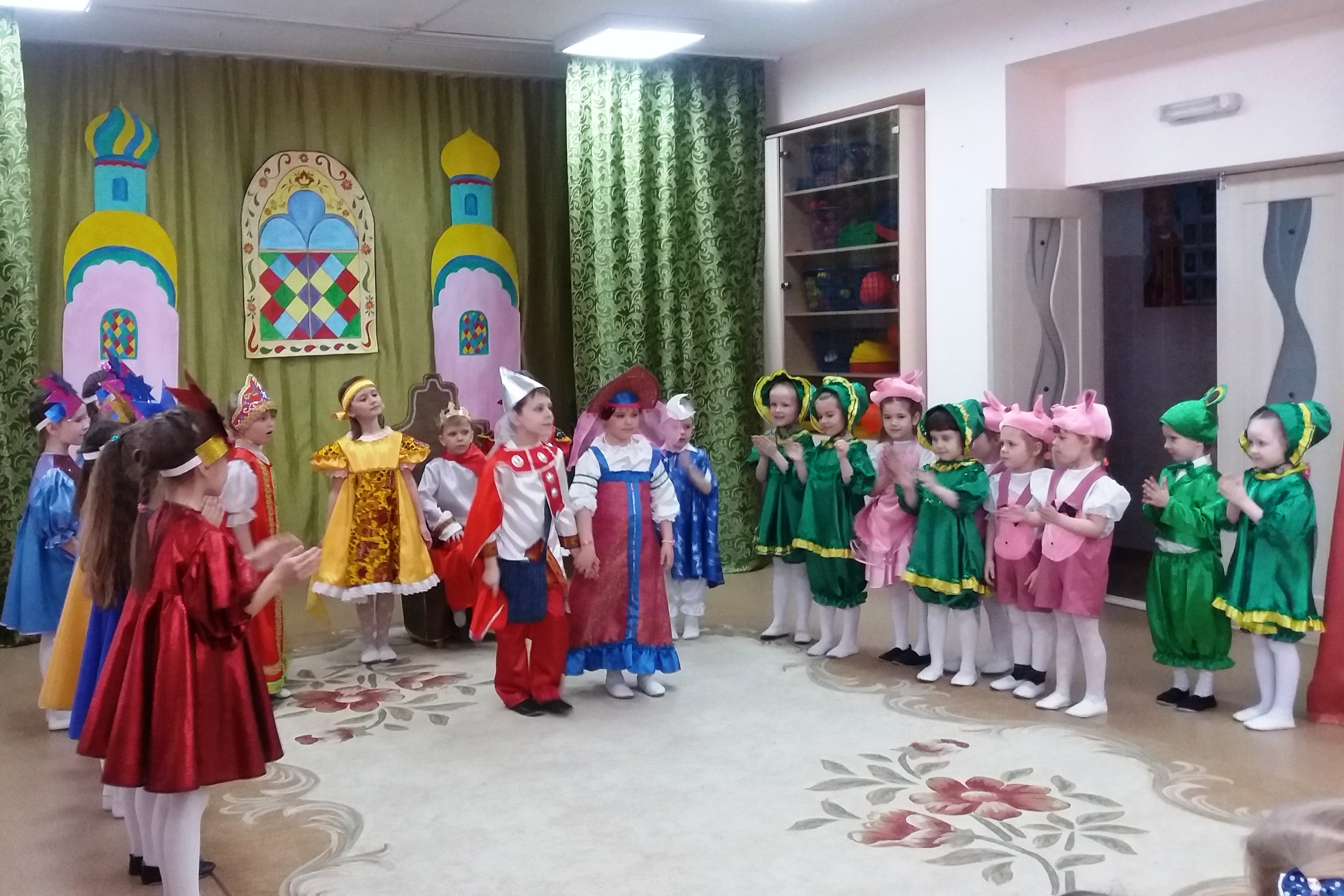 Очаровательное зрелище, в котором участвует 22 ребенка из средней, старшей и подготовительных групп и трое взрослых доставило огромное удовольствие всех присутствующим.