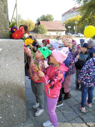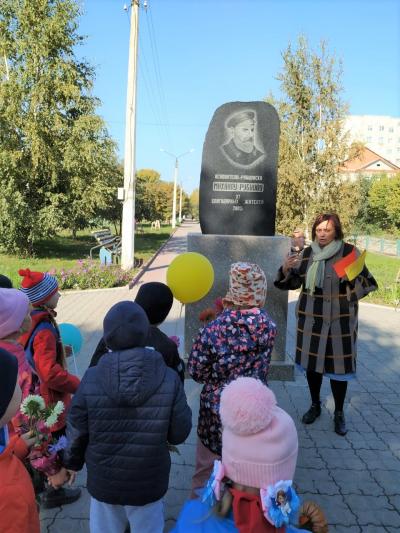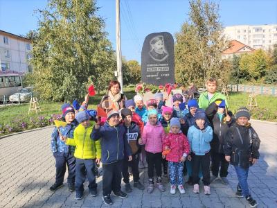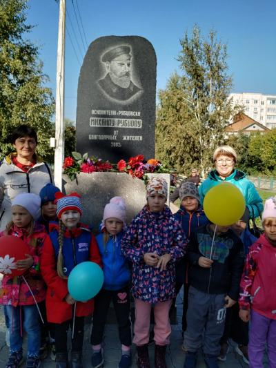 В преддверии празднования Дня Города, подготовительные группы №14 и №16 совершили экскурсию к памятнику основателя нашего города - Михаила Рубцова. Теплый осенний день располагал к прогулке по городу. Приятно было идти по обновленному проспекту Рубцовскому, рассматривать красоту осеннего убранства деревьев, узнавать знакомые улицы и здания. Можно было услышать, как дети переговариваются друг с другом: «А сейчас будет моя улица», «Как хорошо идти и все рассматривать, а в машине так не успеешь разглядеть», «Как мы быстро пришли и совсем не устали»…