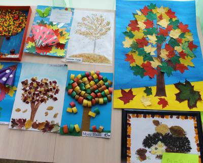 Работы выполнялись в разных техниках: аппликация, аппликация на пластилине, макеты, букеты, панно.