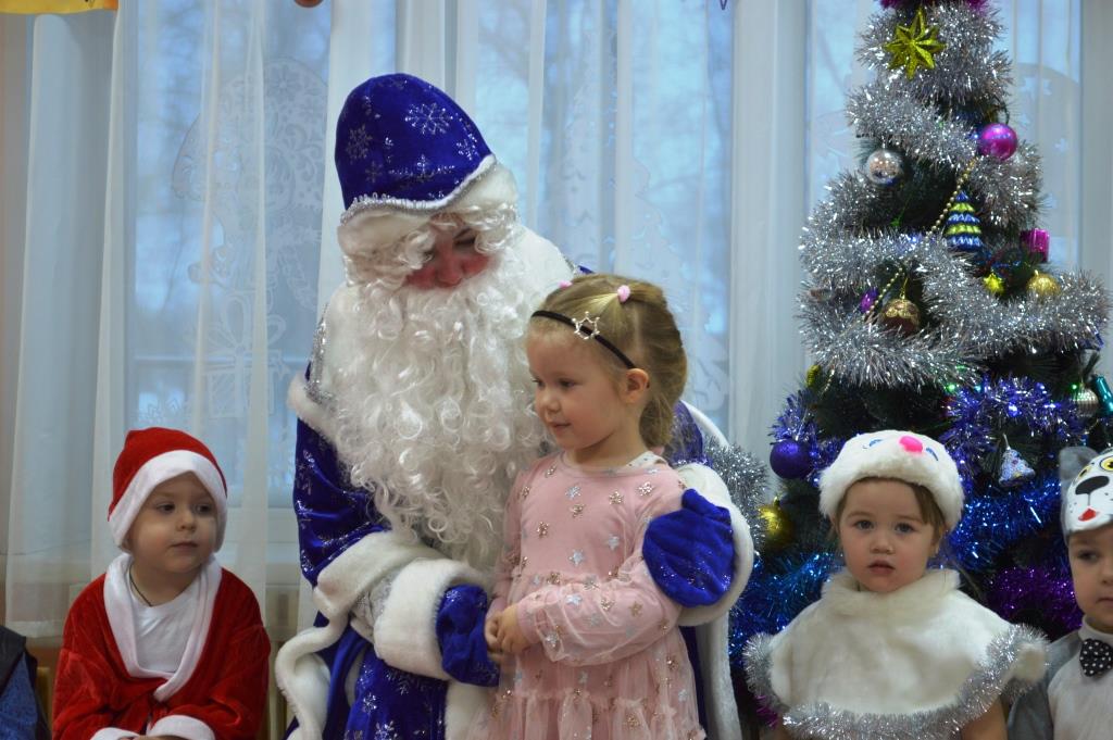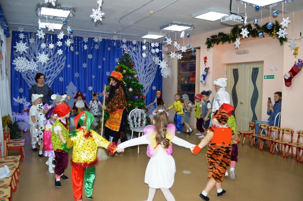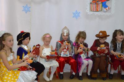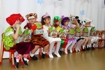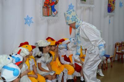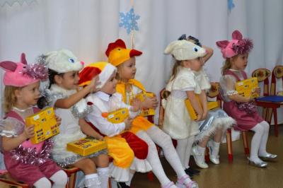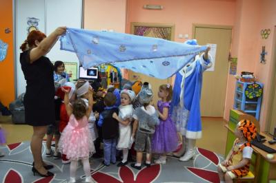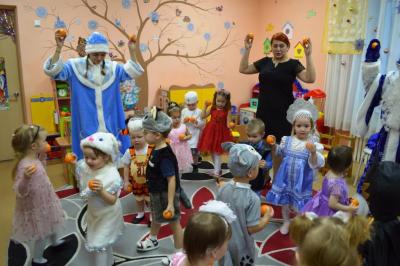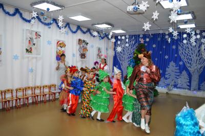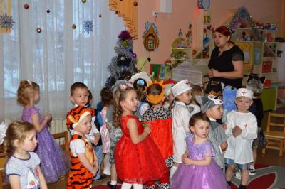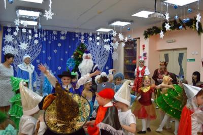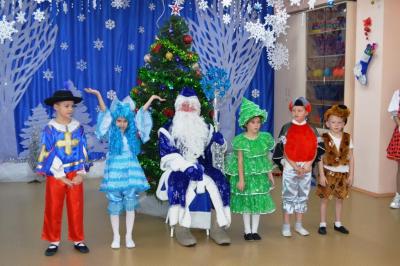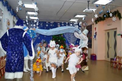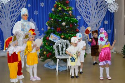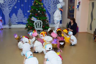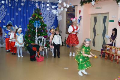 Как здорово встретить самый добрый и светлый праздник у Новогодней елочки! Дети всегда ждут чудеса и волшебство под Новый год! И в этот раз их ожидания не обманулись! В средней группе дети отправились в гости к Снеговичку, где их ждала встреча с Дедом Морозом и Снегурочкой, много веселых игр, танцев и хороводов. В старшей группе было много неожиданного: Зайчик решил стать Дедом Морозом, Баба Яга нарядилась Снегурочкой и решила испортить праздник. Как всегда на помощь пришли Дед Мороз и Снегурочка, и все приключения завершились весельем возле красавицы – ёлки! В подготовительной группе Бычок Гаврюша и Мышка Любопышка спасали Новый год! Ведь Баба Яга и Кот Матвей мешали приходу самого главного волшебника – Деда Мороза, который забыл свой посох возле новогодней ёлочки. В Новогодней сказке, как и любой другой – всё заканчивается хорошо! Много было забав, игр, шуток, загадок. Дети танцевали и пели новогодние песни. А ещё вместе задорно и весело с Бычком Гаврюшей станцевали самый главный Новогодний танец - «Танец маленьких телят»! Не обошли чудеса и волшебство самых маленьких ребят. Ведь Дед Мороз и Снегурочка пришли к ним в группу прямо с улицы, и дети в окошко наблюдали, как они идут к ним издалека. Малыши тоже с удовольствием пели песни, водили хороводы и рассказывали стихи Деду Морозу.
