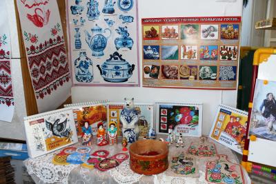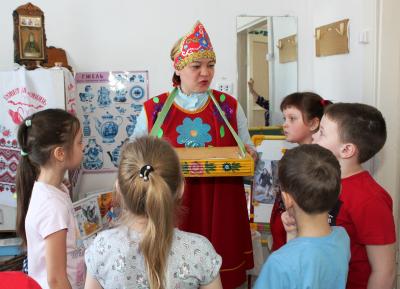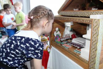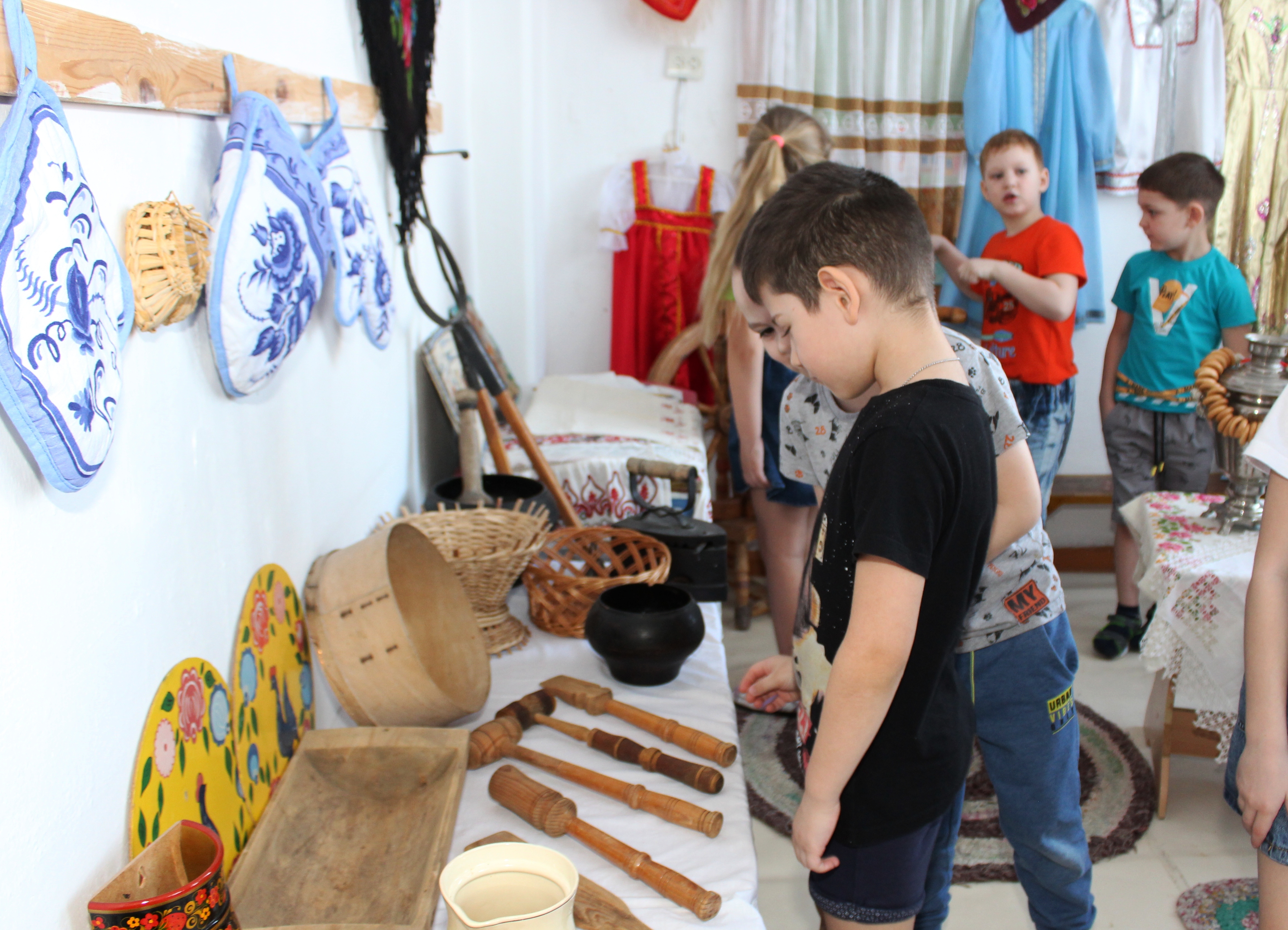 Достаточно было увидеть с каким интересом, пониманием и эмоциональной отдачей дети, в том числе и имеющие особенности здоровья, пели частушки и народные песни, загадывали загадки, рассказывали пословицы и небылицы, водили хороводы… А затем пригласили всех в МУЗЕЙ, сделанный в короткие сроки руками педагогов В.О.Мартынюк и А.В.Бисник. Буквально на пустом месте, в короткие сроки, в небольшой комнате развернулась выставка экспонатов старины. Здесь и макет горницы, и «Красный угол», и люлька под потолком, и старинные игрушки-обереги, и предметы домашней утвари, одежда, музыкальные инструменты, шедевры прикладного творчества и многое другое.