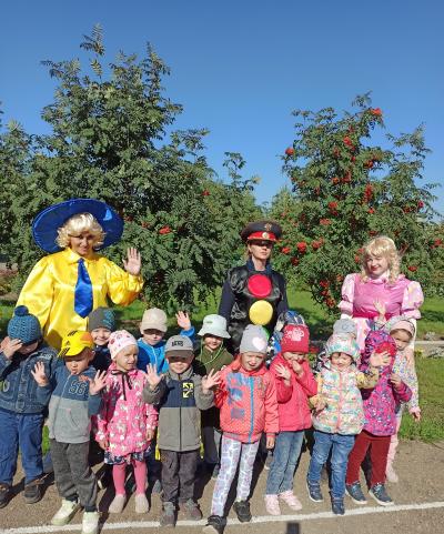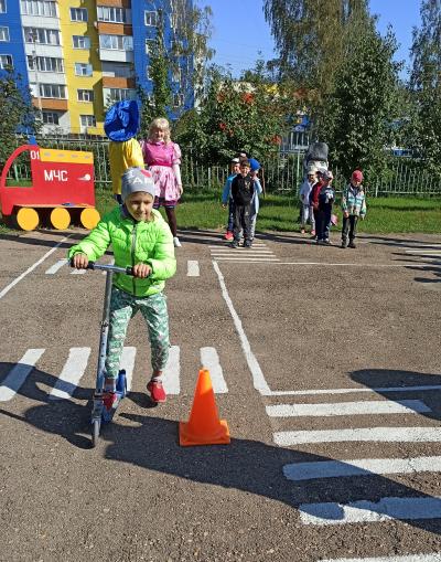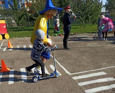 На обновленной площадке ПДД дети встретились с веселыми героями Незнайкой и Веселинкой. Вместе со Светофор Светофорычем дети помогли Незнайке вспомнить правила дорожного движения и потренировались в их выполнении. Герои придумали для детей разнообразные задания, загадки. Дети с удовольствием играли в игры: «Цвета светофора», «Автомобили и пешеходы», «Гонки на самокатах», «Препятствия на дорогах».