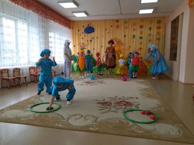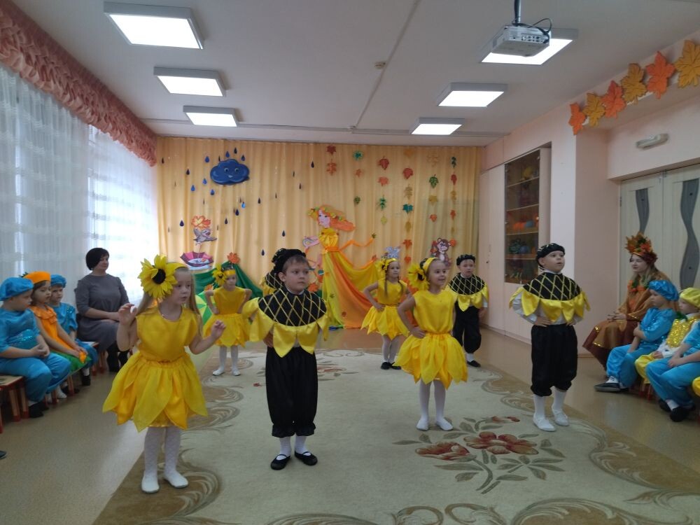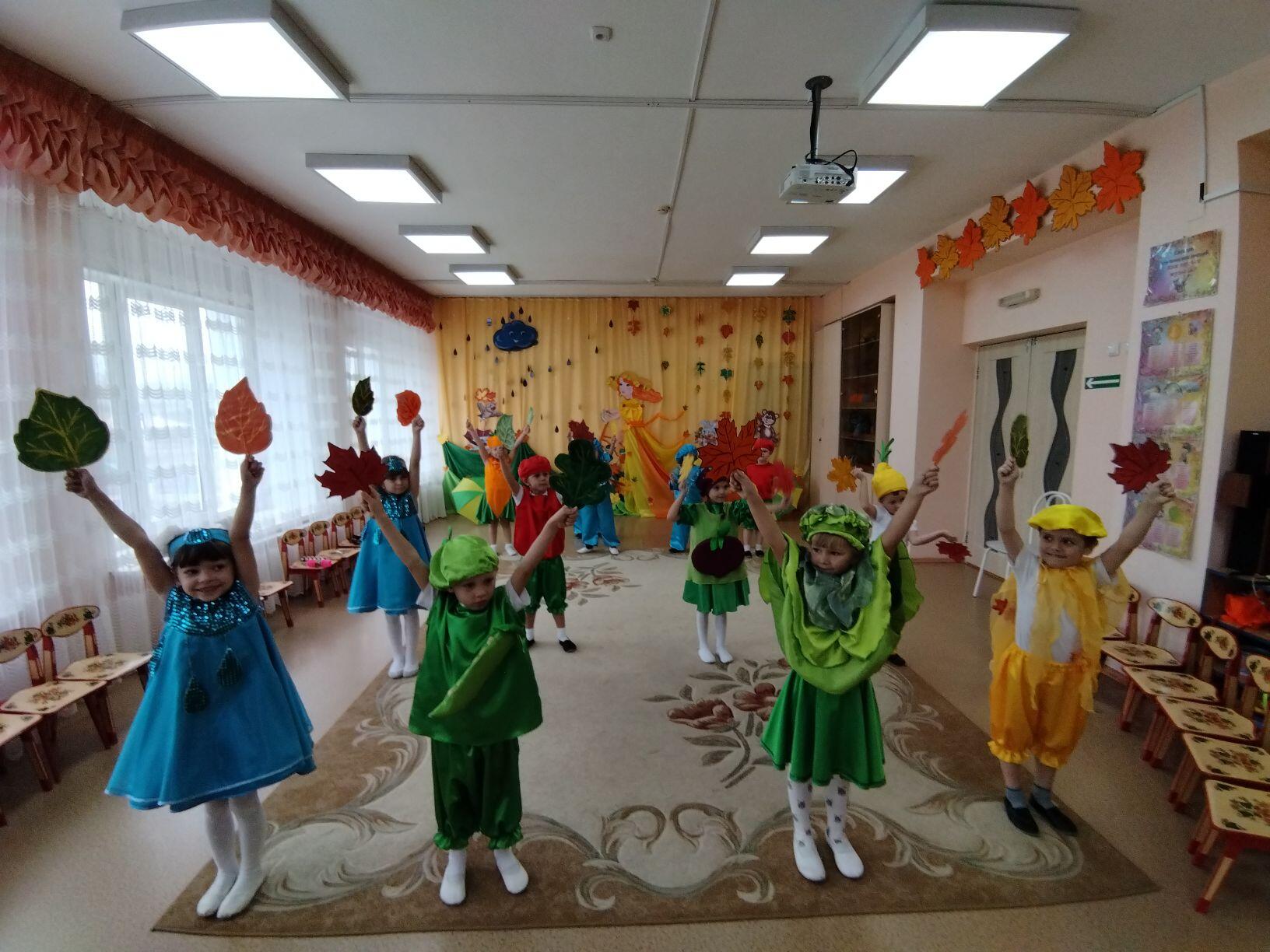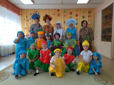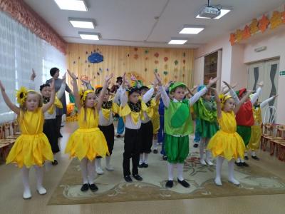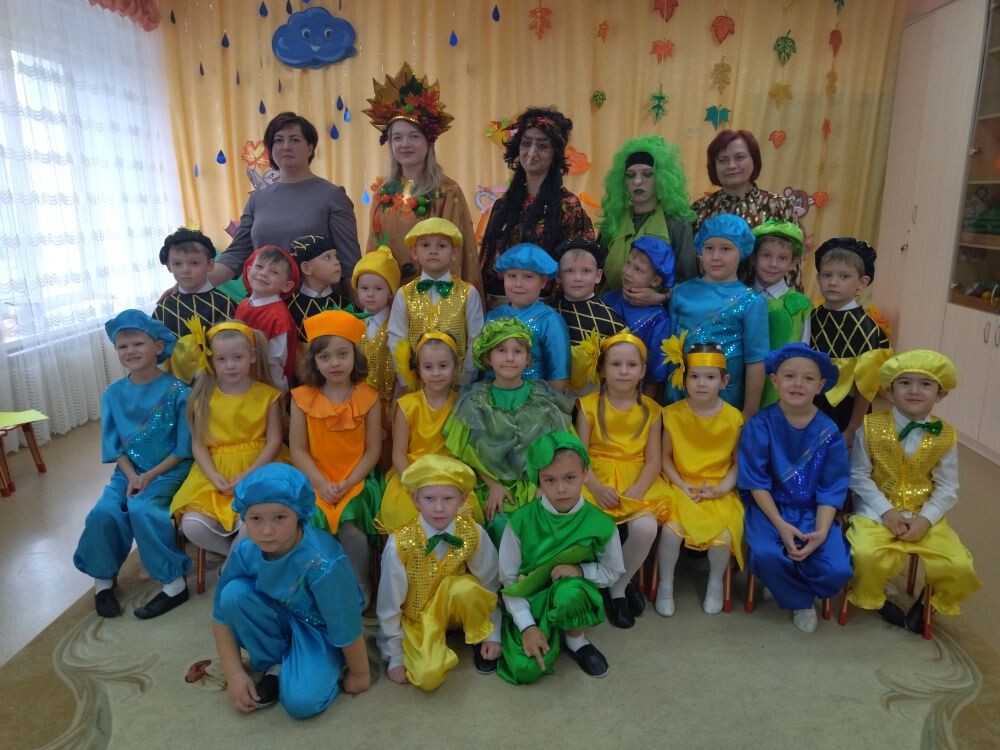 Для детей подготовительной группы Баба Яга и Кикимора устроили настоящее осеннее приключение! Дети играли в веселые игры, отгадывали загадки, читали стихи, помогли героям открыть сундучок Старика-Годовика и исправить время года на волшебных часах. Красоту Осеннего праздника дети подчеркнули вдохновенным исполнением песен, танца с осенними веточками, танца «Веселые подсолнушки» и выступлением «Бумажного оркестра».