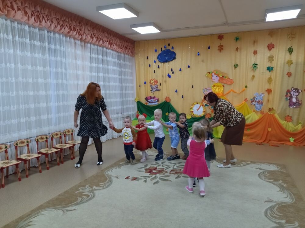 В конце октября в нашем детском саду всю неделю было праздничное настроение, ведь в каждой группе прошел чудесный Осенний праздник! К нему дети долго готовились и ждали с нетерпением. Самые маленькие ребятишки познакомились с друзьями Осени: птичкой, собачкой и ежиком. Они танцевали с листочками, играли с Осенью и со своими любимыми игрушками. В средней группе к детям в гости пришел сказочный Гномик, который подарил детям свои волшебные зонтики. Дети пели песни, читали стихи, танцевали танец «Веселые зонтики» и, конечно играли в разные веселые игры: «Веселая тучка», «Собери листочки по цвету», «Волшебный зонтик» и др.