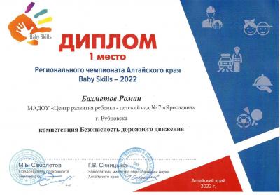 30 марта 2022г. в г.Барнауле прошел Региональный чемпионат Алтайского края «Beby Skills - 2022», где наш воспитанник Роман Бахметов занял 1 место в компетенции «Безопасность дорожного движения».