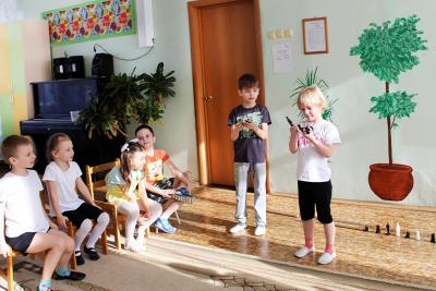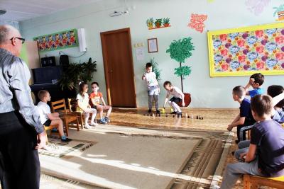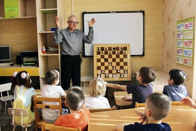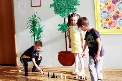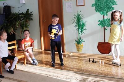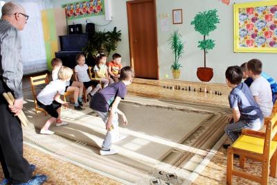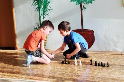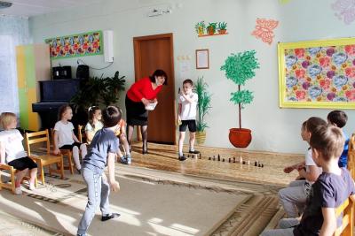 Сегодня у нас в детском саду состоялось занятие с участием педагогов по шахматам Ксении Анатольевны Мироненко и Сергея Ивановича Соколова. Юным шахматистам в качестве разминки были предложены нетрадиционные шахматные подвижные игры - «Городки», «Боулинг», а затем состоялись настоящие шахматные партии на время.