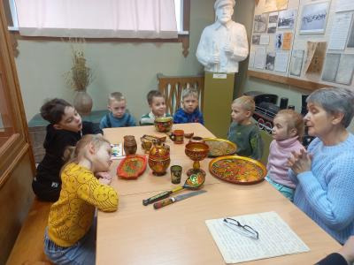 Сегодня ребята из группы №6 посетили Краеведческий музей. Сотрудники музея рассказали ребятам о полудрагоценных камнях и изделиях из них, о русских народных промыслах. Также познакомили с историей старинных предметов быта: прялка, самовары, утюги, чугунки, ступки, коромысла, ухваты и др. Рассказали о хохломской росписи и особенностях получения краски золотого цвета. В конце экскурсии ребятам предложили раскрасить картинку с изображением посуды с хохломской росписью. Экскурсия была очень познавательная и надолго запомнится воспитанникам группы! Литвиненко И.С., Корнеева Л.С.
