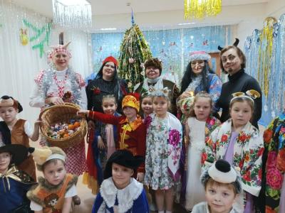 В нашем детском саду стало доброй традицией после новогодних праздников проводить Святочные колядки. Святки, или, как их еще называют Святые вечера – это зимний народный праздник, который начинается на Рождество и длится целых две недели, до самого Крещения. В Святочные вечера устраивались на Руси праздничные гуляния: по дворам ходили ряженые, пели величальные песни, в которых славили хозяев, желали им доброго здоровья, богатого урожая. Все с нетерпением ожидали прихода ряженых с их колядками. Люди верили, что к кому они зайдут – тот двор в Новом году удачлив будет, с достатком и прибылью. Вот и в нашем детском саду прошли Святочные колядки. В костюмах, с песнями и закличками ряженые ребята и взрослые прославляя Коляду, исполняли колядные песни, заклички, с пожеланиями богатства и счастья. Дети водили хороводы, играли в народные игры, устраивали веселые переплясы. Хозяева были щедры и угощали всех детей. Праздник произвел на детей незабываемые впечатления, он получился веселым и задорным. Участвуя в подобных мероприятиях, дошкольники приобщаются к народной культуре и традициям, а это является частью духовно – нравственного воспитания.